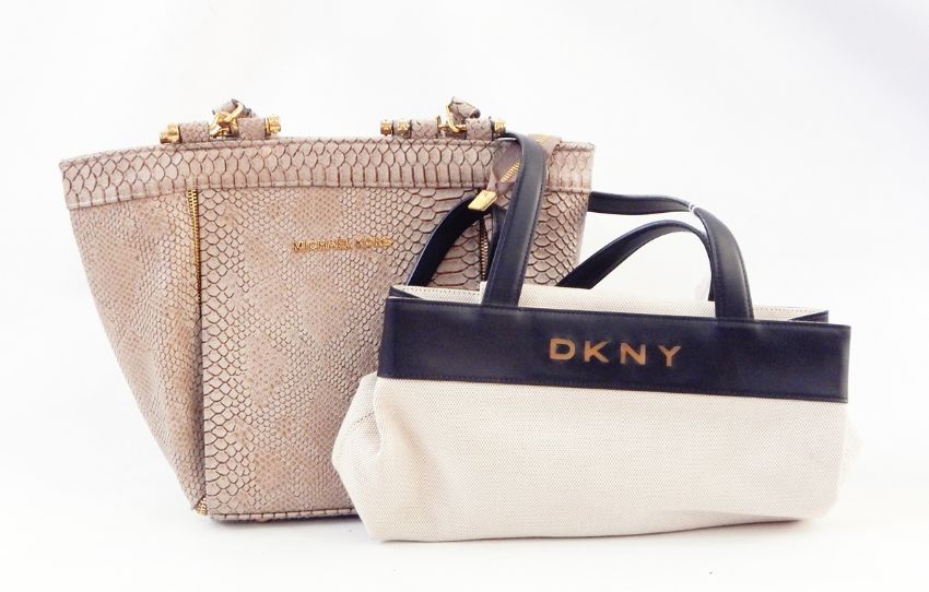 Four DKNY various bags, a Michael Kors bag, a black leather Giorgio Armani messenger bag and a small Juicy Couture canvas and leather bag (7) bought as seen