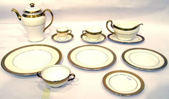 Extensive Minton 'Buckingham' dinner, coffee and tea service, No.K-159, cream ground with gilt border, 320 pieces approx. and 2 casserole lids, a teapot lid and one cruet set