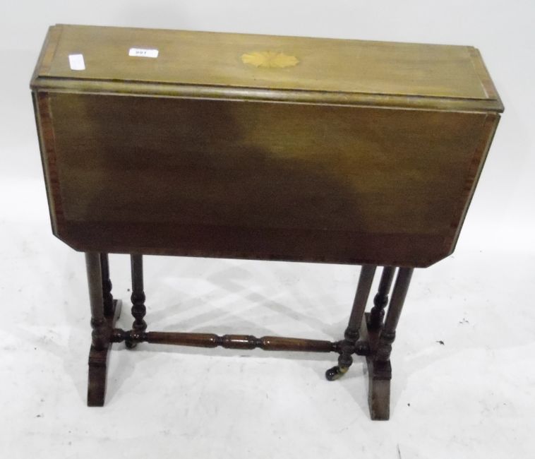 Edwardian mahogany and cross-banded Sutherland table, the top inlaid patera