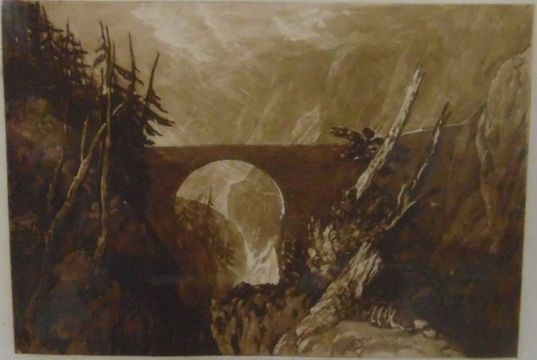 Frank Short Mezzotint after J M W Turner Bridge over gorge, signed in pencil by engraver, 23cm x 30.5cm