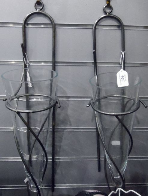 Pair of glass and metal wall sconces