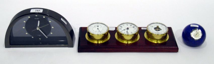 Caithness quartz clock paperweight, a modern barometer and a Seiko quartz mantel clock (3)