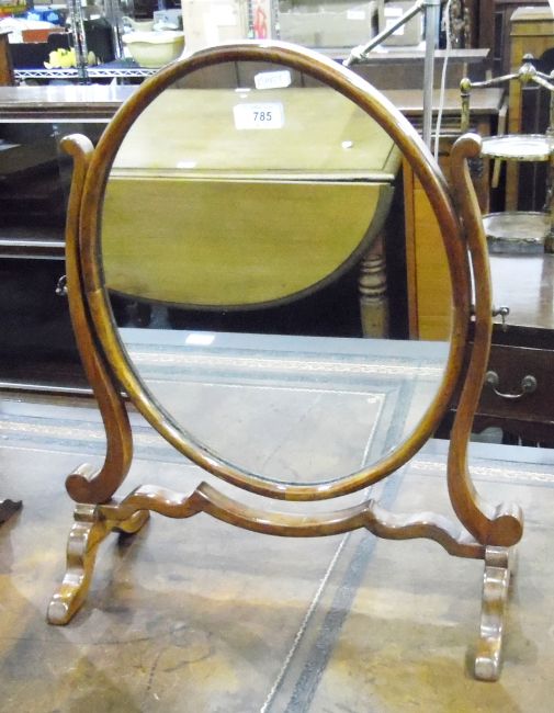 Georgian-style mahogany swing-frame oval dressing table mirror on splayed legs, height 50cm