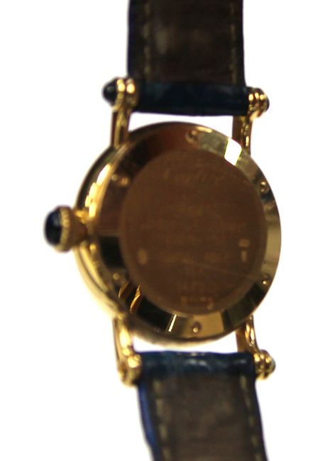 Cartier Diablo lady's wristwatch 114400 in yellow gold case, white Roman dial, yellow gold bezel and blue leather strap (dial 20mm)