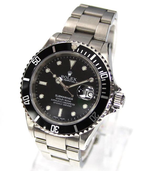Rolex Submariner gentleman's wristwatch 16610 in stainless steel case, black dial, black bezel and stainless steel strap (with box) (dial 30mm)