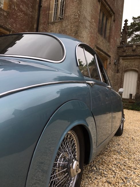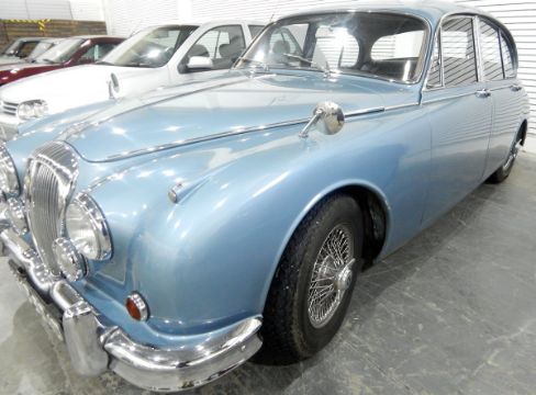 Daimler Jaguar You wont be alone in mistaking it for a Mk 2 Jaguar given that the body is almost identical to the Jaguar. The big difference was under the bonnet where you will find the highly regarded 2.5 V8 engine. With its distinctive “Growl” and a number of refinements such as the walnut veneer on the dash boardThe Mark 2 had been branded as the first family saloon car capable of exceeding 100mph . Daimler were aware that the popular success of the Mk 2 with an expanding client base, might compromise the Jaguar brand, but Daimler were confident that there was a market for an upgraded version which was to be powered by the new and much admired V8 engine, giving it a more comfortable ride. It became the car of choice for many aspiring members of the "professional “ middle classes.This car was built in 1966 and has automatic transmission and power steering which comes in handy when you want to park or do a U3 point turn. It has a genuine miles ( There is sufficient paper evidence to support that figure. ) Interestingly the 3 previous owners all lived in the same Yorkshire village. It is all original inside and out. It has black leather seats and golden walnut dash board. It also has a new battery and 5 new tyres . It's in extremely good condition, inside and out. IT has been very well looked after, as you would expect given its mileage and paperwork. There are photos of its ground up repaint. All the door open and shut with and satisfying little click.The under carriage has been sealed although there are 2 or 3 very small signs of rust under a wheel arch and door.