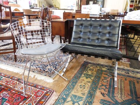 1970's chrome and black leather Barcelona chair after Mies van der Rohe (originally designed 1929) (with original Form International, London brochure page)