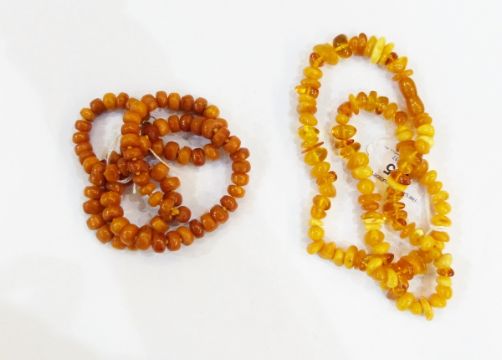 Butterscotch amber beaded necklace, 33.3g in total and a modern amber beaded necklace (2)