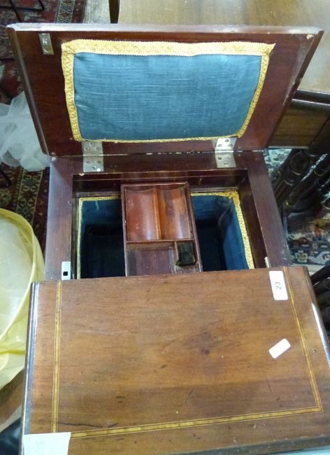 Edwardian mahogany inlaid fold-out card table, the hinged lid enclosing compartment, on splayed legs, 35cm wide