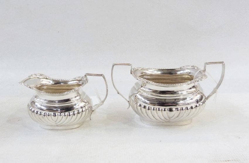 Victorian silver two-handled sugar bowl and matching cream jug by Thomas Hayes, Birmingham 1898, of half fluted oval form with foliate gadrooned borders, approx. 8oz