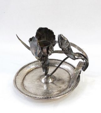Chinese silver candleholder, floral decorated on a circular base, marked to base, 12.5cm diameter, 11cm high