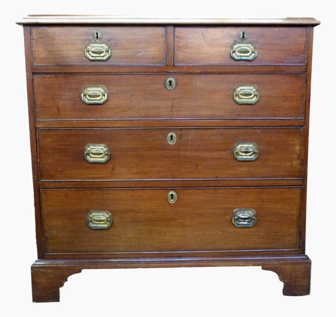 19th century mahogany chest of two short and three long drawers, each with brass escutcheon, handle with backplate, on bracket feet, 95cm wide