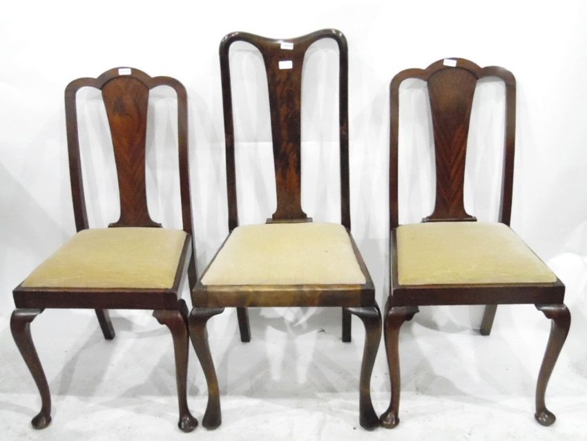 Set of four mahogany dining chairs on cabriole supports and a similar pair (6)