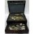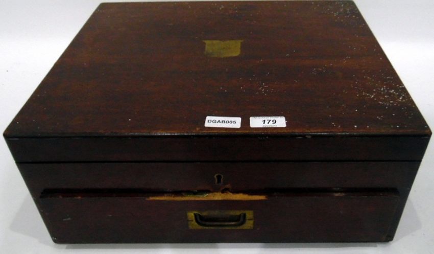 Quantity of plated table flatware in stained wood table top canteen with single drawer