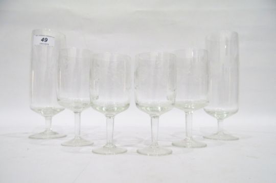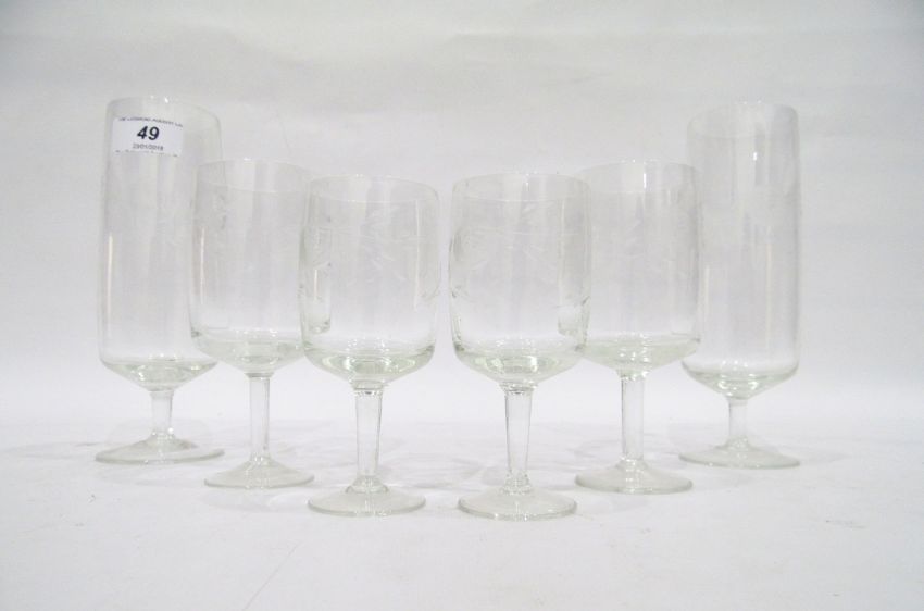 Set of drinking glasses to includes wines and champagnes, with etched rose detail (20)