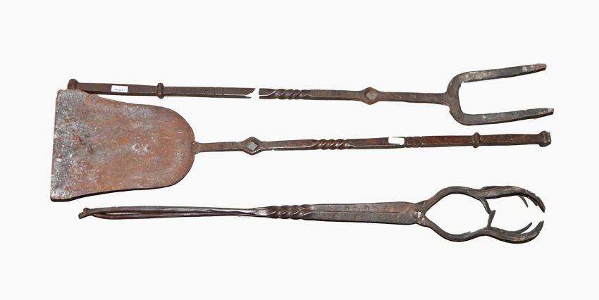 Set of 17th century fireirons, log tongs and fork