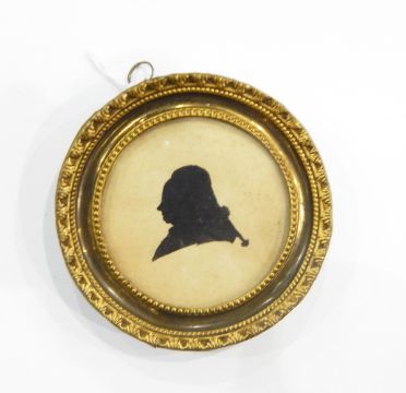 Late 18th/early 19th century silhouette portrait of a gentleman's head and shoulders, circular, 6.5cm diameter