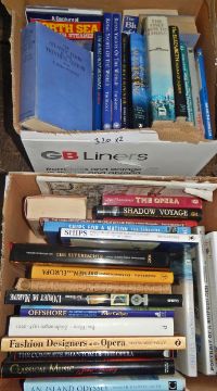 Quantity of books on sailing including yachts, Britannia, also various volumes about opera (2 boxes)