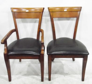 Set of six modern dining chairs with tapering bar backs and leather seats, including two elbow chairs (6)