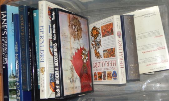 Various books on heraldry, including British Orders and Awards, The Complete Book of Heraldry, Heraldry in the National Trust Houses, Introduction to Heraldry, Orders and Declarations, etc (1 box)