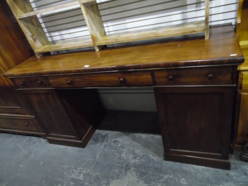 Early 19th century mahogany sideboard of plain rectangular form fitted with one long and two short drawers, over plinth cupboards, approx 173cm wide