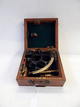 Alex Dobbie & Son, Glasgow brass and black japanned metal sextant in mahogany case