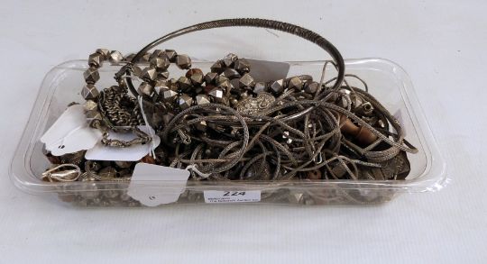 Quantity of silver-coloured metal (possibly Middle Eastern) necklaces, jewellery and loose beads (1 box)