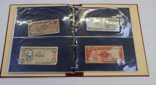 Banknotes to include Bank of Jamaica, Nederlands, Narodowy Bank Polski, Bank of Ghana, Norges Bank, Banco de Espana, Malaysia, Banco de Mexico, Swaziland, the Japanese Government, Central Bank of Egypt and others (1 album)