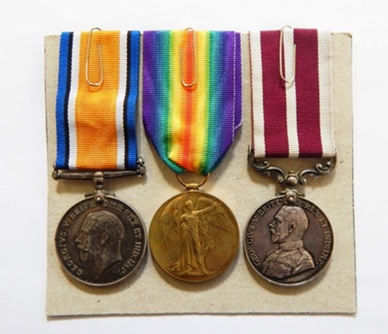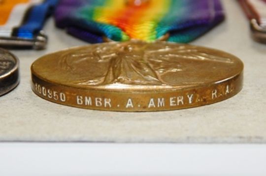 WWI Meritorious service medal, war medal and victory medal awarded to '800950 BMDR A Amery RFA'