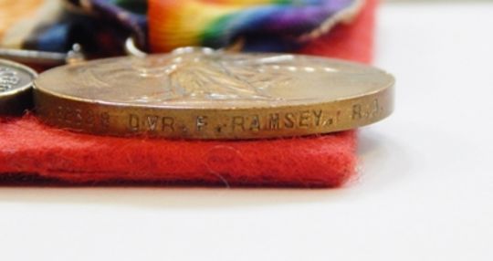 WWI military medal 1914 star, war medal and victory medal awarded to '62328 S Sth F RAMSEY H BY RHA'