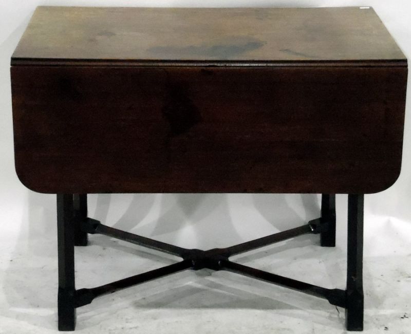 Victorian mahogany drop-leaf occasional table, on square chamfered legs united by cross-stretcher, width 91cm