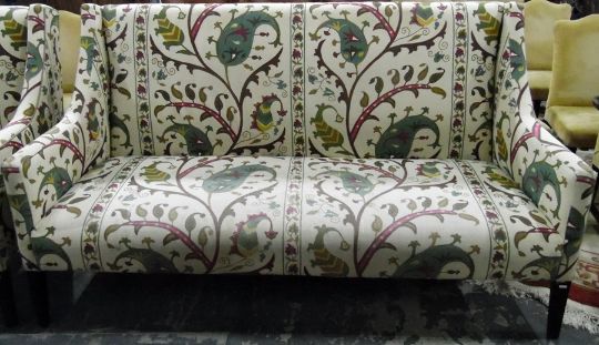Large three seater sofa with high back, on square tapering supports The dimensions are 107H x 70D x 186W approx..