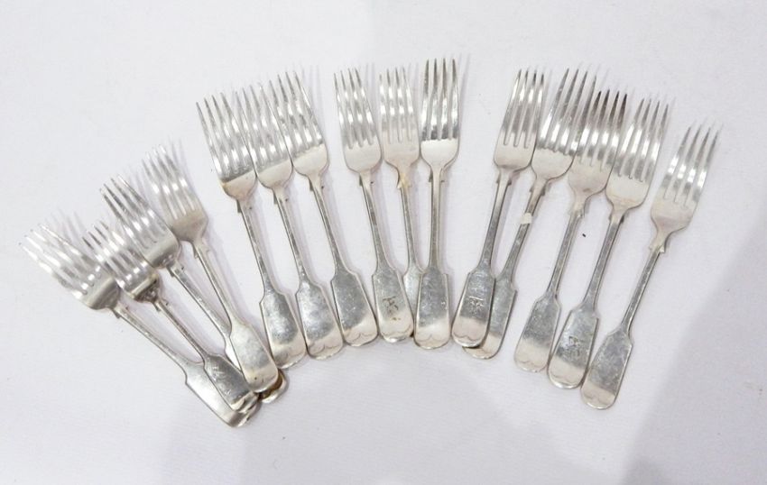 Quantity of silver plated fiddle pattern forks, cream-handled knives and other plated table flatware