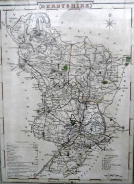19th century map of Derbyshire, 24.5cm x 19cm, another handcoloured map of Derbyshire and a modern map of Bedfordshire (3)