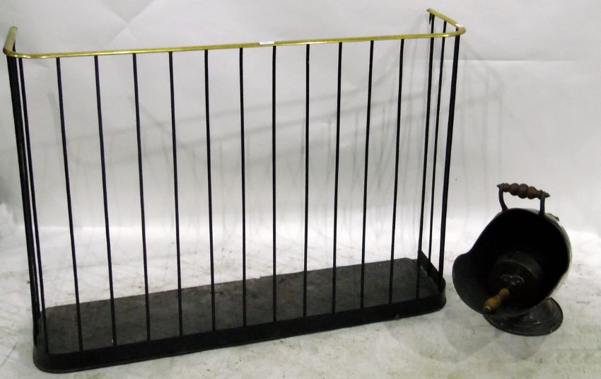 19th century brass and iron nursery fire surround, a good copper helmet-shaped coal scuttle with turned wooden handle (2)