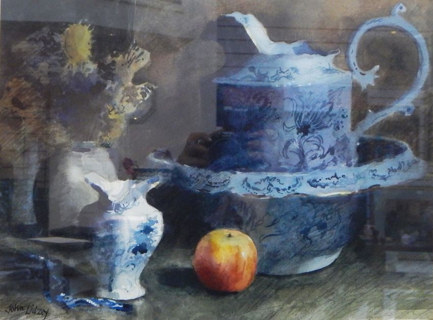 John Lidzey (1935-2009) WatercolourStill life with apple, with Linda Blackstone Gallery label, signed lower left, 32.5cm x 43cm