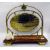 20th century brass table gong with oak rectangular base, on bracket shaped feet, 29cm high approx