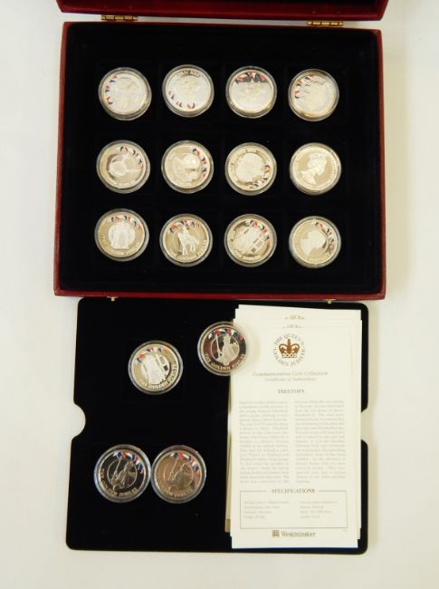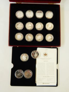 13 silver crowns commemorating 2002, 28.28 grams and three cupro nickel. All Proof, boxed