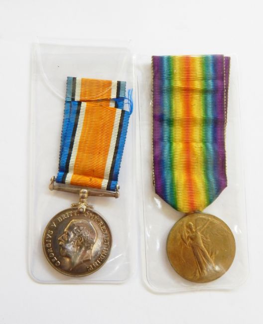 WWI War medal and Victory medal named to '236455 PTE F C NICHOLLS GLOUC YEO'