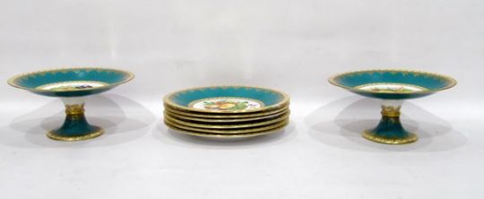 19th century dessert service, fruit pattern, to include two comports (one cracked) and six matching plates