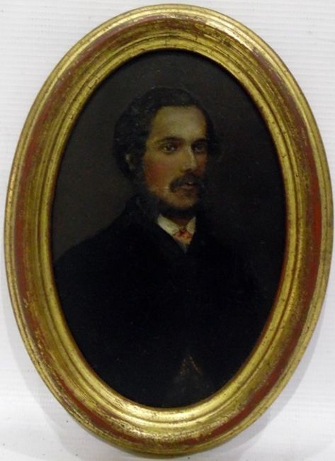 19th century portrait miniature Oil on boardHalf-length portrait of a gentleman, oval, 14cm x 19cm