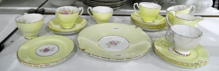 Hammersley & Co china part tea service, yellow ground and floral decorated