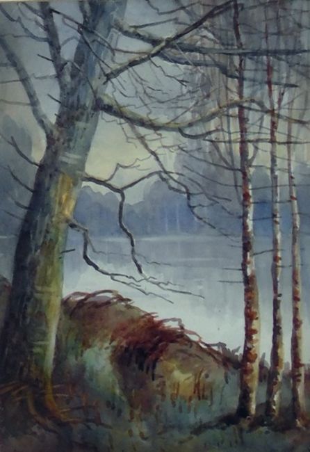 20th century schoolWatercolour drawing"Winter in Wiltshire 1921", initialled lower right, 30cm x 22cm Watercolour drawing Figure on horseback on country road (2)