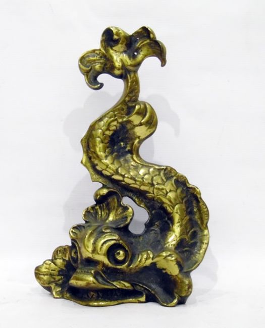 Brass doorstop in the form of a sinuous dolphin