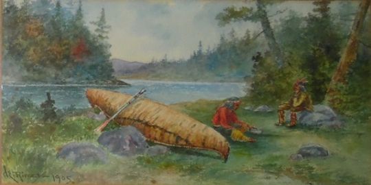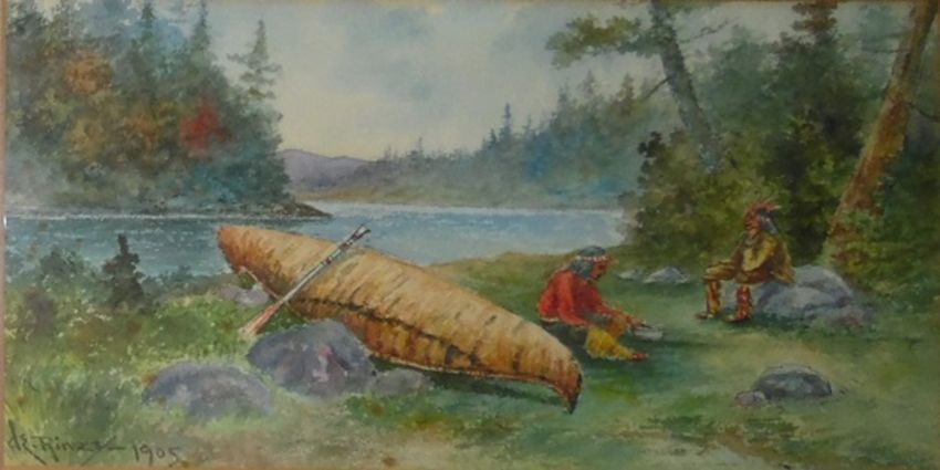 20th century schoolWatercolour drawingWaves on the coast, unsigned, 17cm x 22.5cm Watercolour drawing"Indians Camping", dated 1905Print (3)