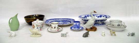 Masons ironstone bowl decorated with a peacock, on a blue ground, a 19th century cup and saucer with black sprigs and various other items