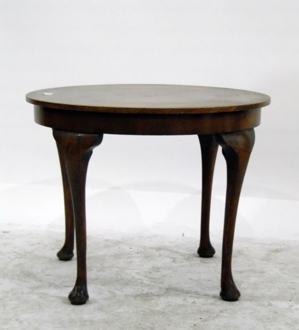 Circular mahogany tea table on four cabriole supports with pad feet, 47cm high x 60cm diameter