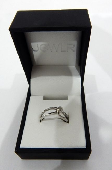 14K white gold ring with approximately 0.25ct diamond set in a cross-banded design, size 'M/N'