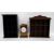 Inlaid stained wood Knight Gibbons mantel clock with quartz movement, two wall shelves and two reference books Stella Ashbrook "Collecting Pendelphin" and "The Pendelphin Collectors Handbook"