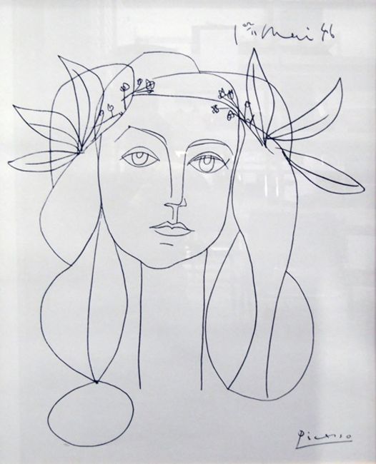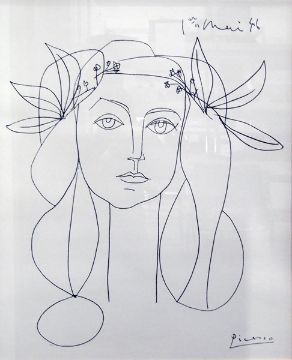 After Picasso Print Portrait of a young girl with flowers in her hair, 82cm x 66cm